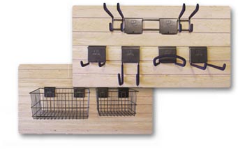 Slat-Wall and 7 Slat-Wall AccessoriesEndless Possibilities... Slat-Wall is the perfect addition to your garage. Whether above your workbench or on a wall, 5 Slat-Wall Hooks and 2 Slat-Wall baskets give you the ultimate in storage flexibility. 18" x 13" Basket 13" x 10" Basket 2-Hook Tool Rack 10" Double Hook 5" Double Hook